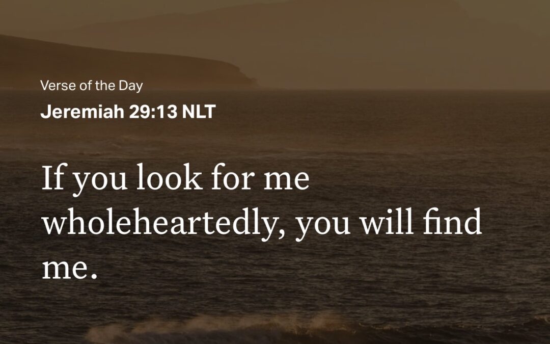 Jeremiah 29:13 – If you look for me wholeheartedly, you will find me.