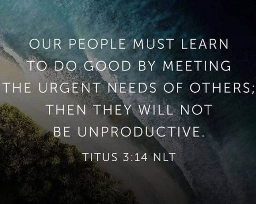Titus 3:14 – Our people must learn to do good by meeting the urgent needs of others; then they will not be unproductive.